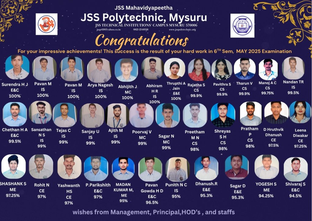 We are proud to announce the Toppers List for 6th Semester May 2025 Diploma Examination